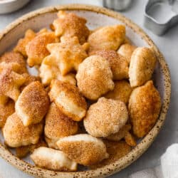 Turn leftover pie crust into perfect buttery and flakey pie crust cookies. Roll and shape using fun cookie cutters then simply sprinkle with sweet cinnamon and sugar.