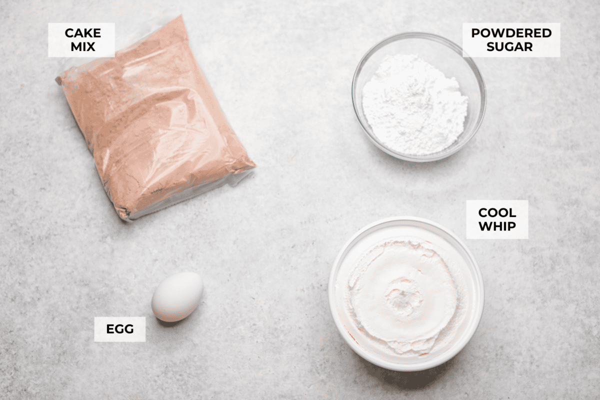 - Prep: Preheat the oven to 350 degrees Fahrenheit and line 2 baking sheets with parchment paper. Add the cake mix, cool whip, and egg to a large bowl.