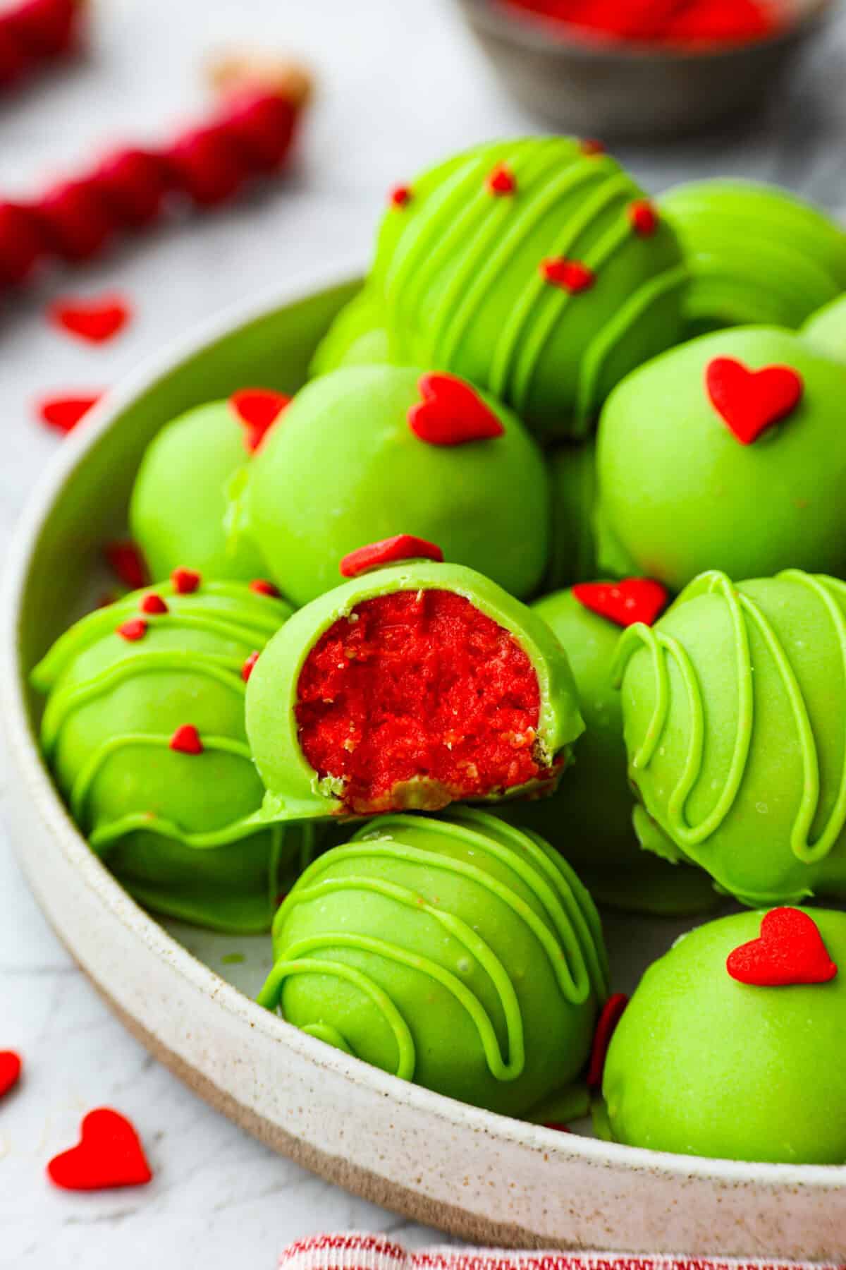 - Sprinkles: Red heart sprinkles are essential for the Grinch look. The green or white sprinkles are optional.