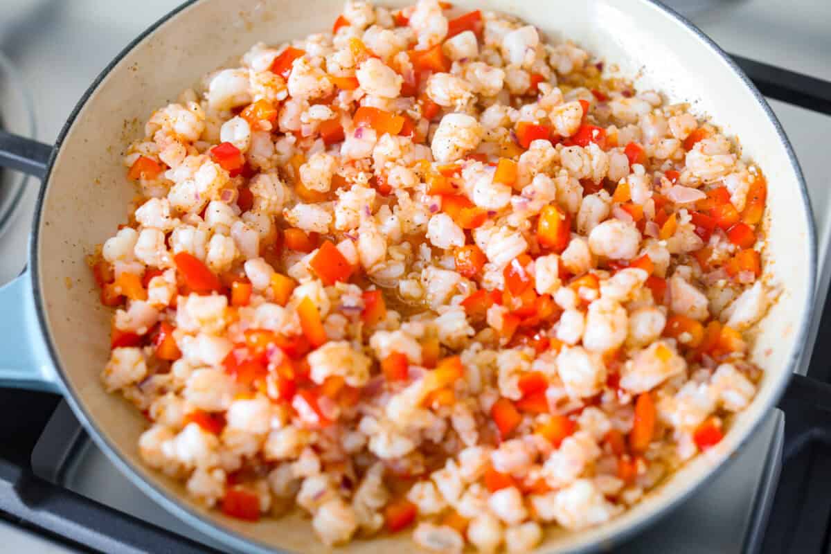 - Combine: Add the shrimp mixture back to the skillet and stir until evenly incorporated into the cream cheese mixture. Season with salt and ground black pepper to taste.