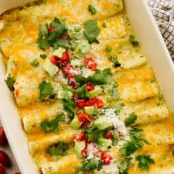 These are next-level breakfast burritos baked in a creamy, cheesy sauce. I love making them ahead so when everyone wakes up, all I have to do is bake and serve.