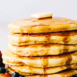 My grandma’s recipe is simple and always turns out tall, soft, and fluffy. These are the pancakes I grew up with, and they still beat any boxed mix out there.