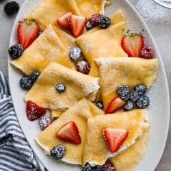 Fill these buttery homemade Crepes with sweet fruit and cream or go savory with eggs and cheese.