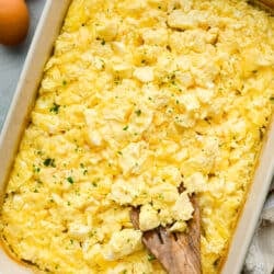 The easiest way to feed scrambled eggs to a crowd without standing over the stove. They bake up fluffy and perfect every time, and you can keep them warm until everyone’s ready to eat.