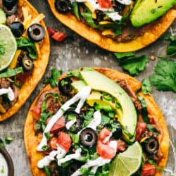 These Tostadas are easy to make and layered with flavorful toppings that make this main dish one of the best! Create a delicious dinner right at home within minutes!