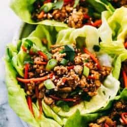 Asian turkey lettuce wraps are packed with tender meat and seasoned, crunchy veggies. These light and tasty wraps are the perfect healthy appetizer or even dinner!