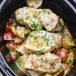 Creamy, tender pork chops cooked in the slow cooker with ranch seasoning and potatoes. Easy, family-friendly, and perfect for busy nights.