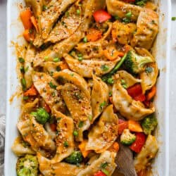 My potsticker casserole takes the stress out of dinner with all the flavors of potstickers, but in a super easy, 10-minute prep bake. Perfect for busy nights!