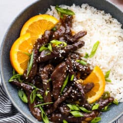 Crispy on the outside, tender on the inside beef strips coated in a tangy orange glaze. This orange beef recipe is the perfect weeknight dinner and sure to become a new family favorite! It may even rival your favorite takeout spot.